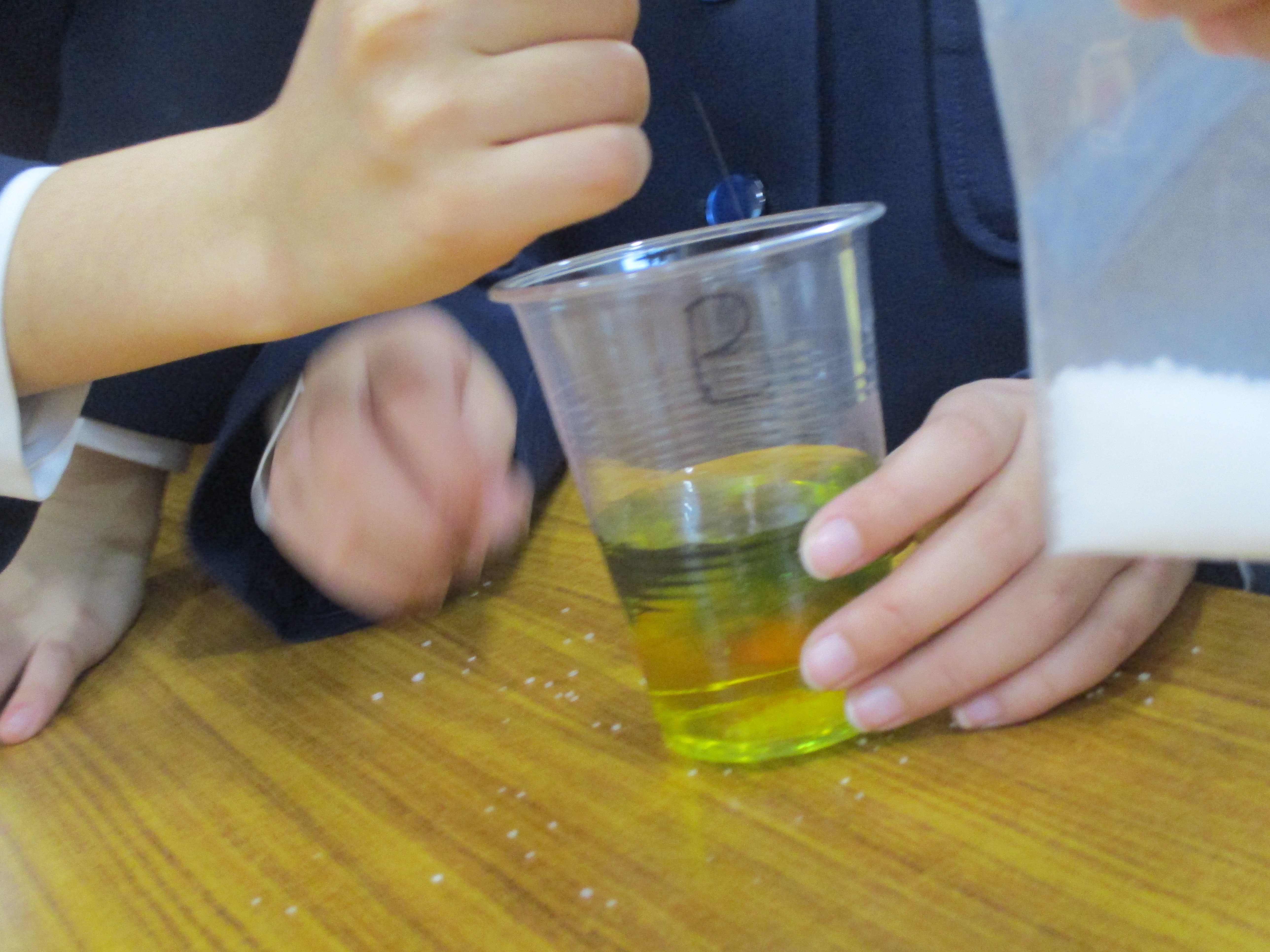 コップに緑の水を入れて、ある粉を入れると・・・