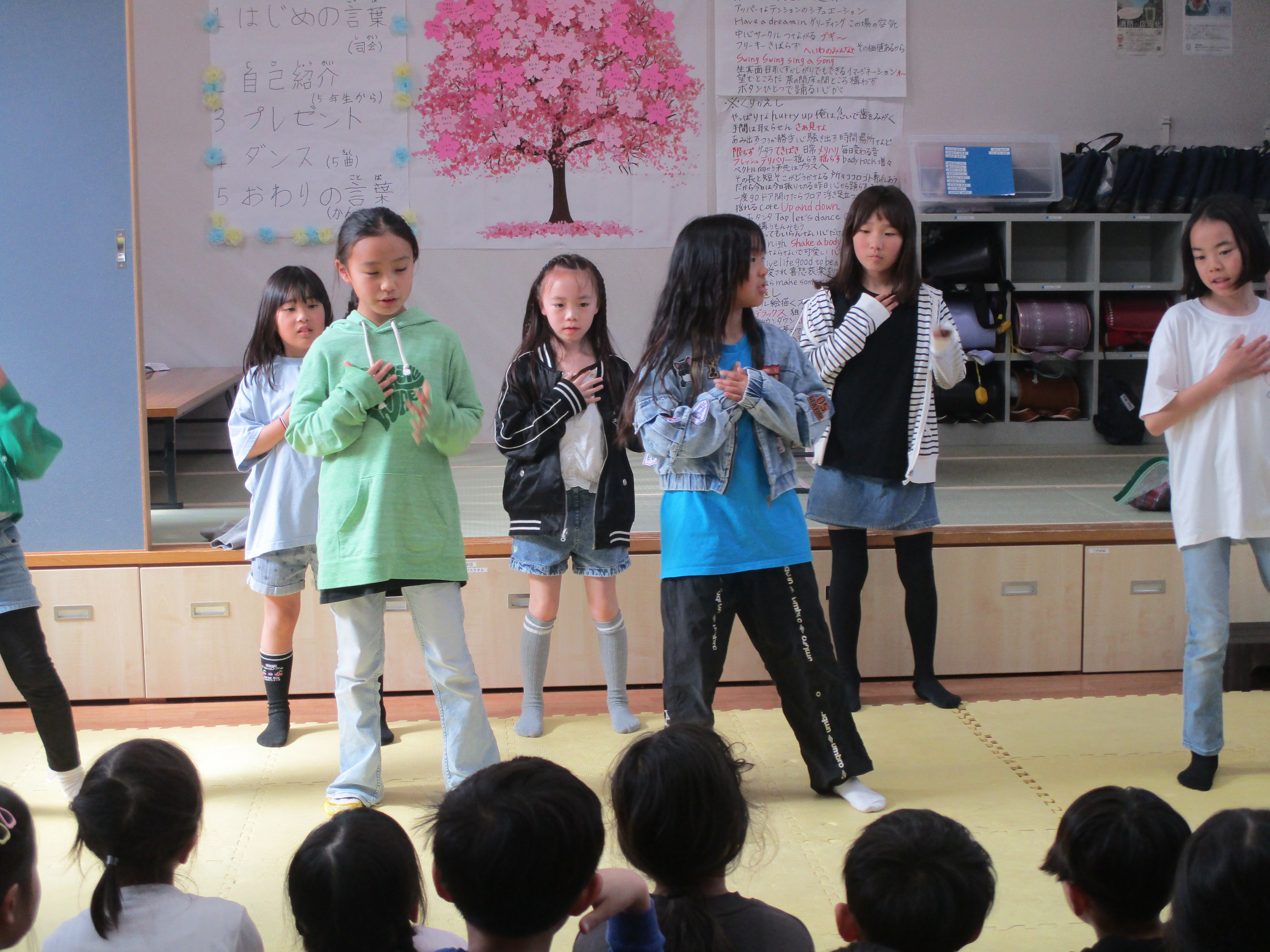 名前、小学校、学年を5年生から言い、桜の木に花を咲かせました°˖✧