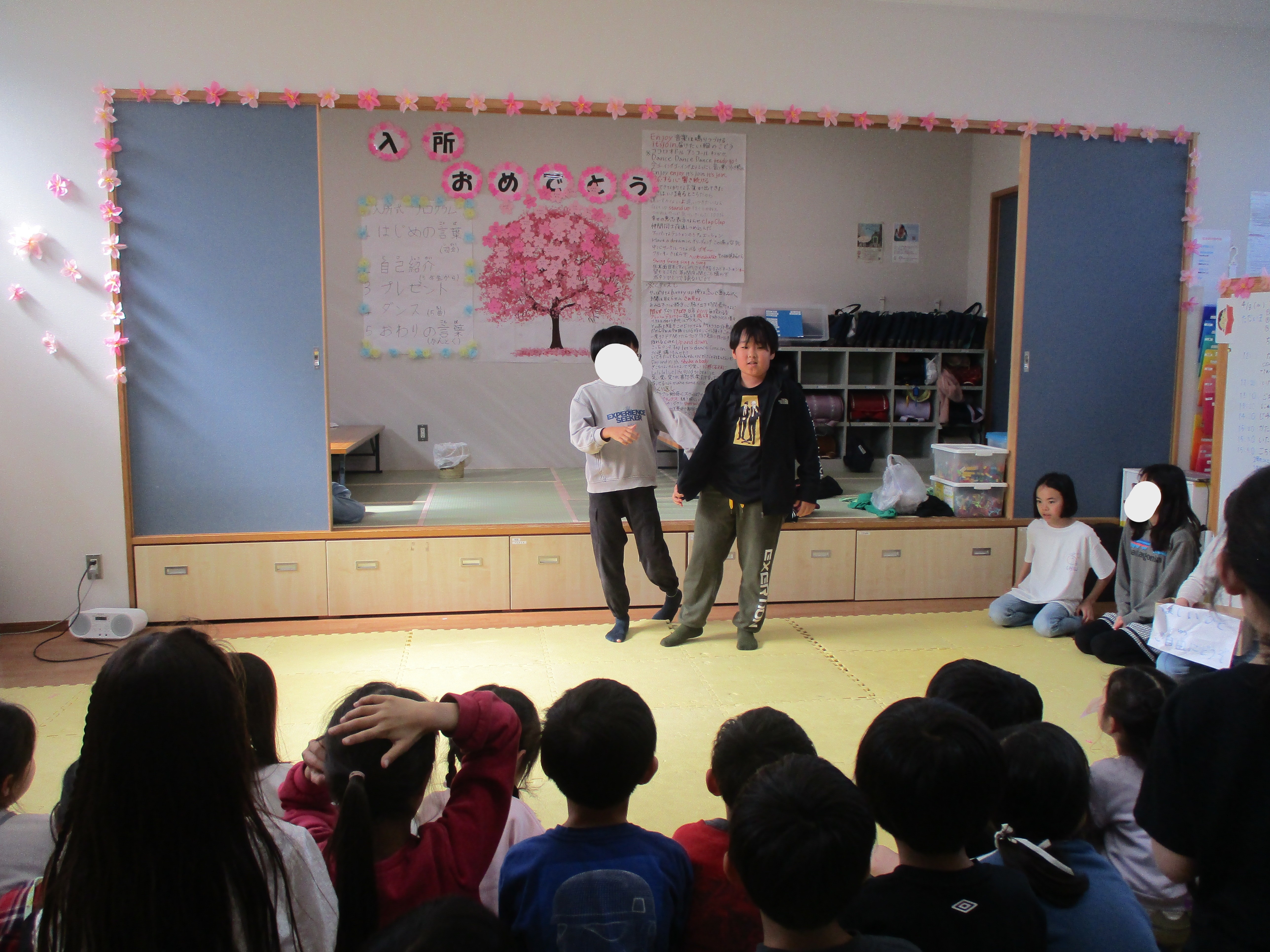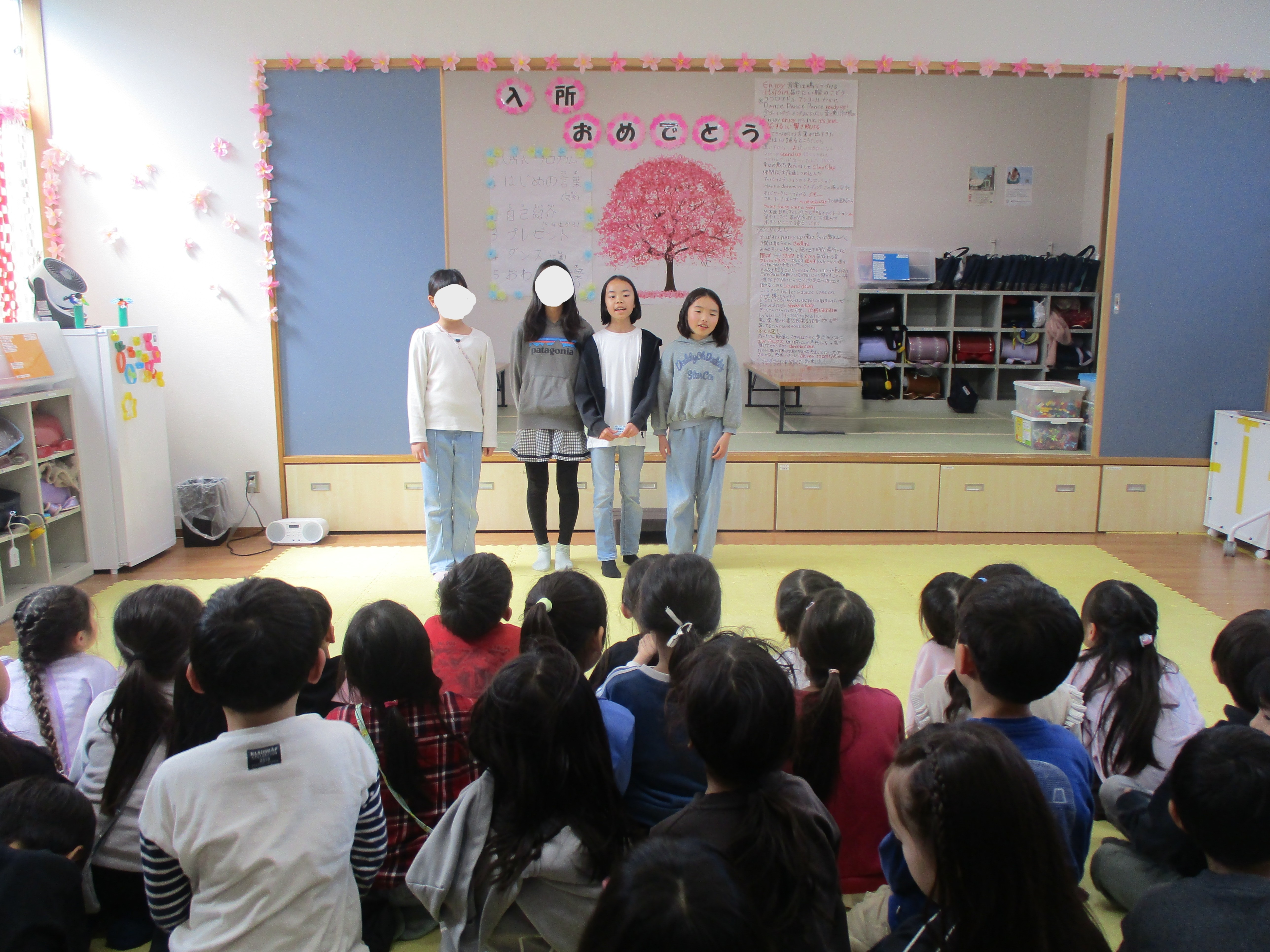 入所式のプログラムは春休み中に開催した高学年会議で4~5年生が考えてくれました。1から子どもたちが考えた入所式。新入所生も、在所生も緊張気味の中入所式スタートです(#^.^#)
